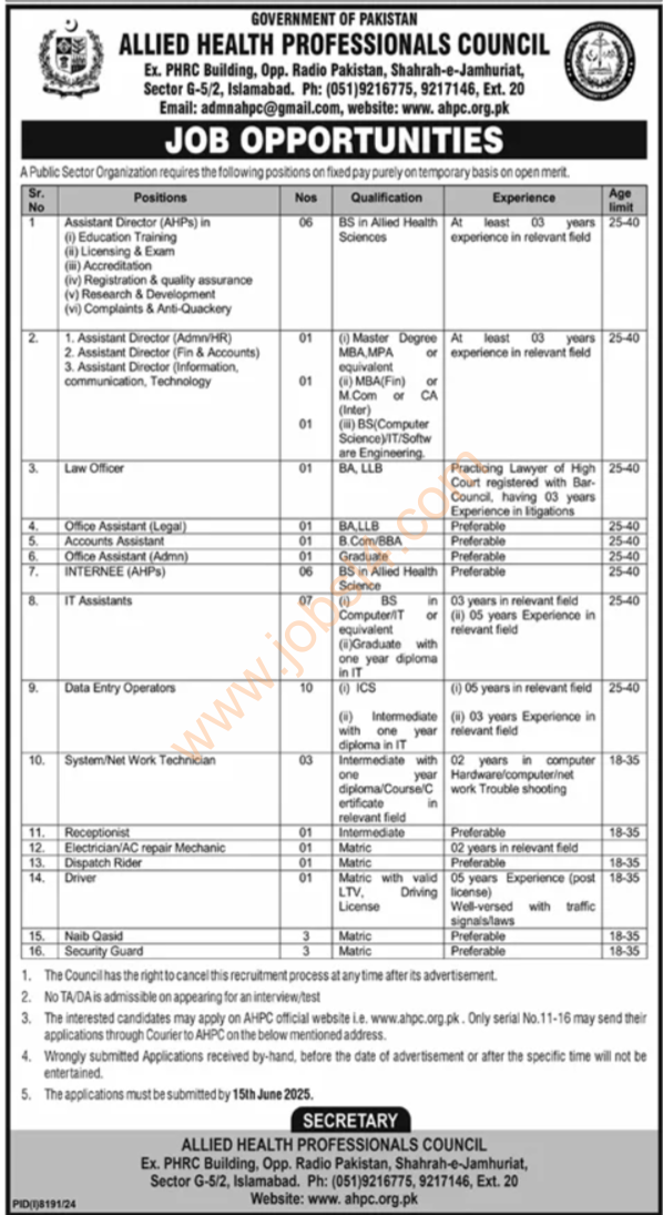 Are you looking for government jobs 2025 or wondering about new jobs 2025 in Pakistan? Good news! The Allied Health Professionals Council in Islamabad has shared many new govt jobs for people with different levels of education. If you are searching for jobs near me or Today new jobs, these jobs may be just what you are looking for.